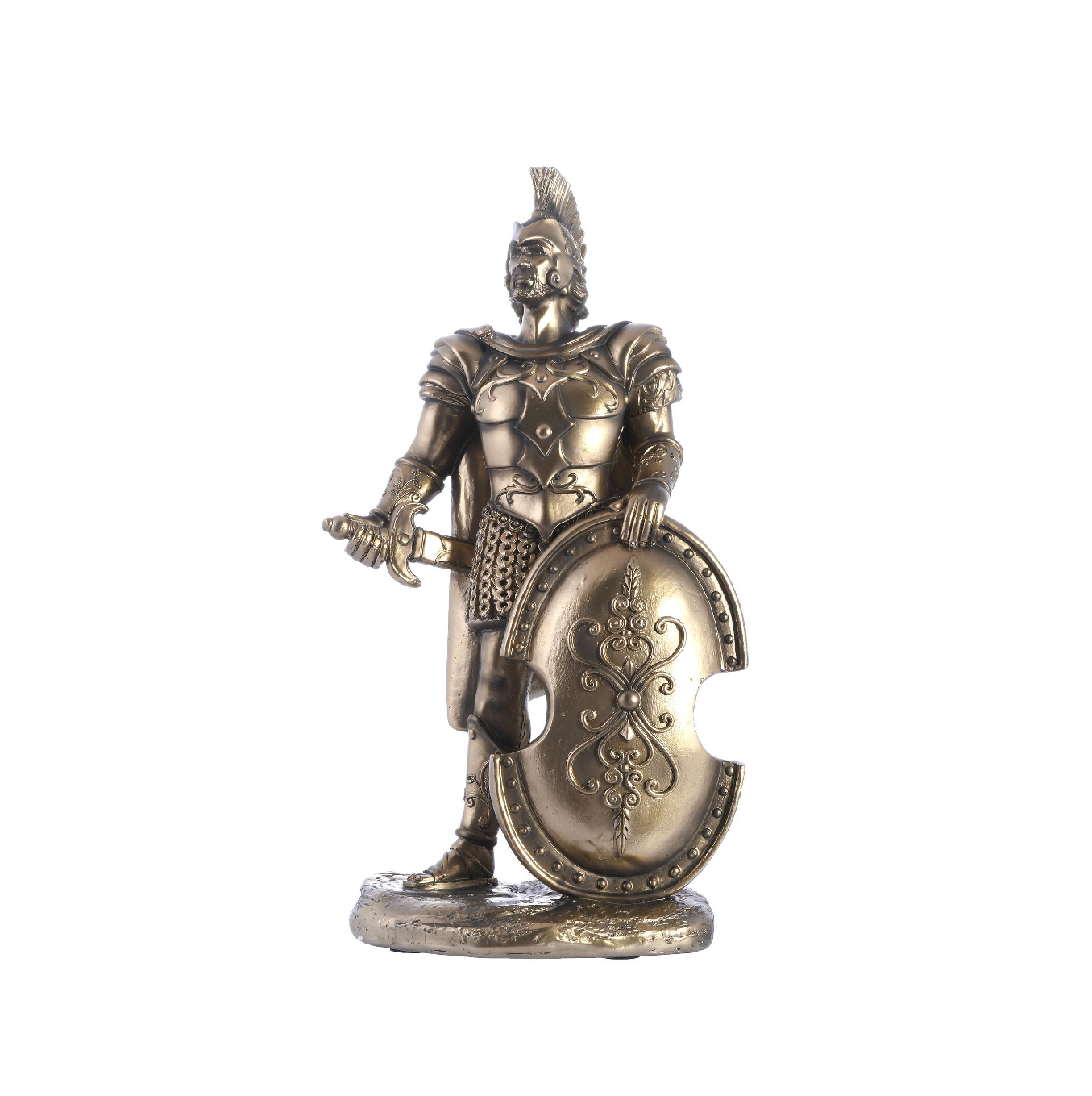 Majestuosa escultura de un guerrero imperial en armadura metálica, sosteniendo un escudo con finos grabados ornamentales y una espada lista para la batalla. Con detalles meticulosos y una postura imponente, esta pieza simboliza el coraje, la disciplina y la grandeza de los antiguos combatientes. Ideal para coleccionistas y amantes de la historia.
